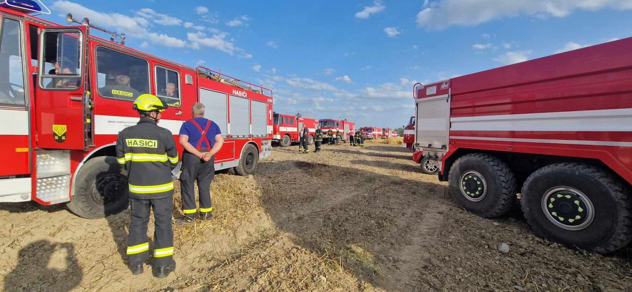 Dnes 2. 7. krátce před osmnáctou hodinou vyjela jednotka s CAS 24 Liaz a DA Gaz, na rozkaz krajského operačního střediska, k požáru polního porostu u města Dobřany. Z důvodu nepříznivých povětrnostních podmínek se požár velmi dynamicky šířil a musel být vyhlášen nejvyšší 4. stupeň požárního poplachu. I přes nepříznivé podmínky se požár podařilo lokalizovat ještě před zahořením lesního porostu, který se rozkládá v těsné blízkosti zasaženého pole. ![]()