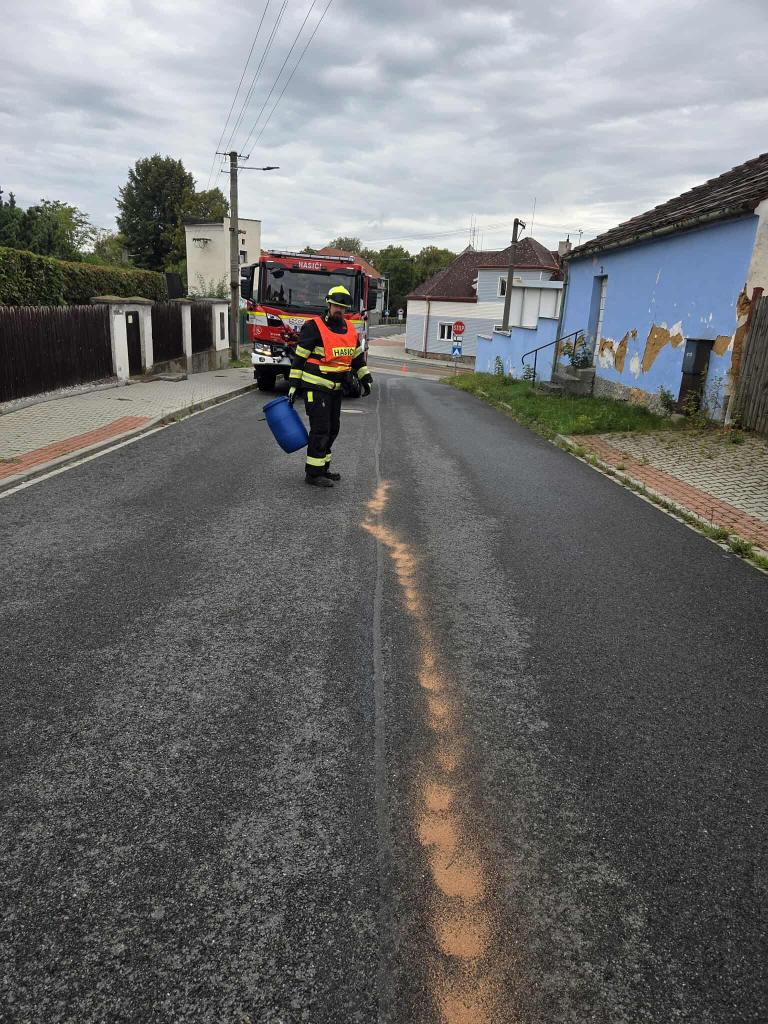 Dne 23.8.2025 vyjela jednotka s CAS 20 SCANIA v počtu 1+5 k uniku ropných látek na pozemní komunikaci v obci Zbůch. Únik byl nahlášen místím občanem v prostoru ulice Nádražní. Po příjezdu na MU byl proveden průzkum, kdy byla zjištěna kontinuální skvrna, patrně motorové nafty, která se táhla cca v délce 230 metrů od křížení ulic Sokolská x Nádražní. Za tímto křížením ve směru do ulice Hornická bylo zaznamenáno pokračování skvrny v délce cca 20 metrů a následně únik PHM končí. Na opačné straně skvrny v křížení ulic Nádražní x Brigádnická se skvrna stačí do ulice Brigádnická, kde pokračuje v délce cca 70 metrů a následně se stáčí do vnitrobloku bytového domu. Únik PHM v celé délce zjištěné průzkumem byl likvidován s využitím sorpční látky. Po celkové likvidaci nalezeného úniku PHM se jednotka vrací zpět na základnu.