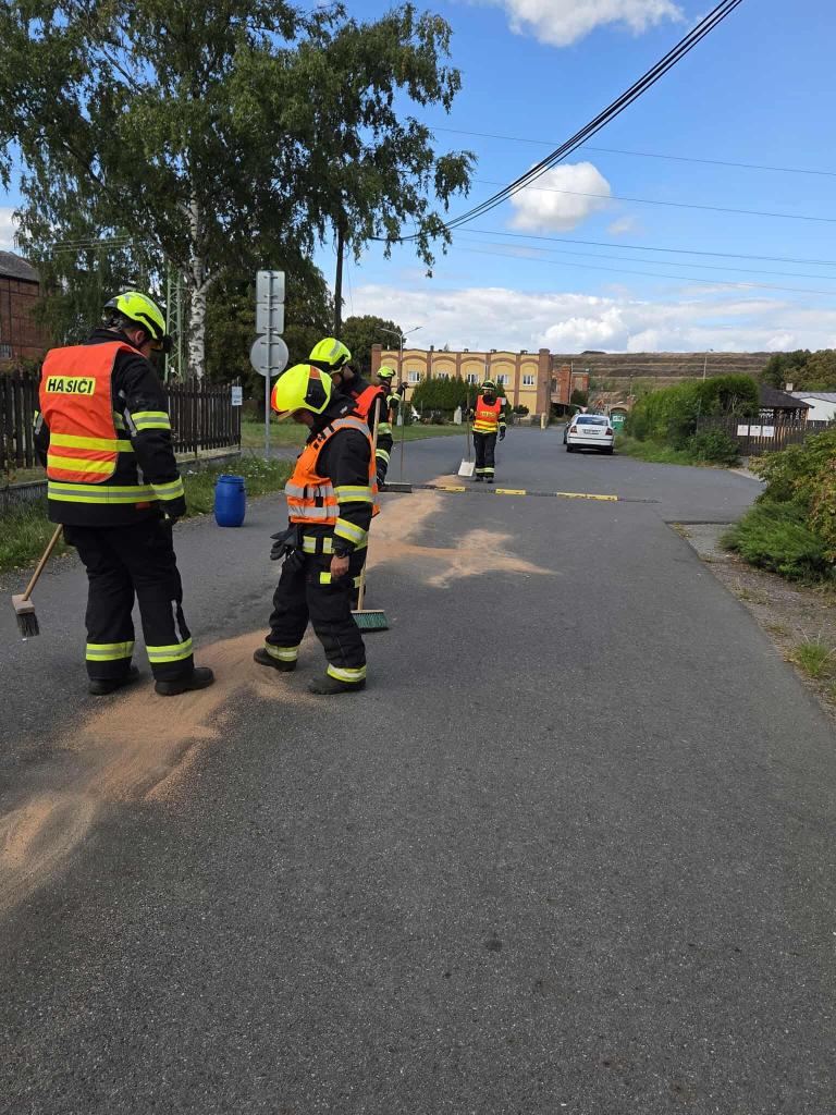 Dne 23. 8. 2025 vyjela jednotka s CAS 20 SCANIA a s DA L2Z GAZ do ulice V Sídlišti v obci Zbůch k nahlášenému úniku PHM na pozemní komunikaci (zjevně se jednalo o shodný zdroj úniku jako v případě události předchozí události). Po příjezdu na MU a provedení průzkumu bylo zjištěno, že na MU již zasahuje jednotka HZS HS Nýřany. Po domluvě s VZ provedla jednotka likvidaci skvrny s využitím sorpční látky v části ulice V Sídlišti a následně pokračovala na křížení ulice Plzeňská x Hornická, kde se v části ulice Hornická (ve směru od křížení Plzeňská x Hornická) rovněž nacházela ropná skvrna. Po sanaci uniklé látky z pozemní komunikace a domluvě s VZ se jednotka vrací zpět na základnu.